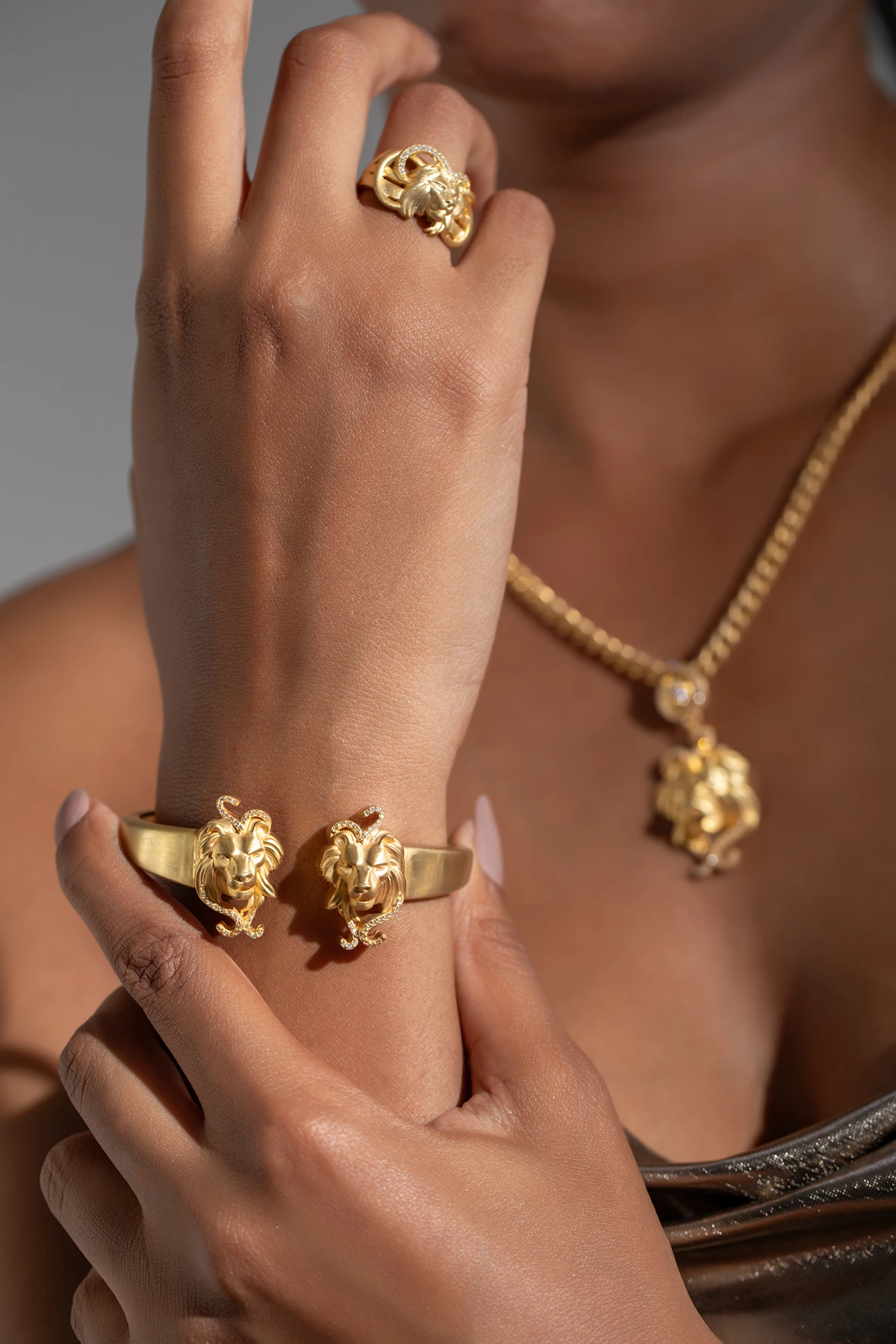 Optimism Collection : Embrace the lion's timeless symbolism—strength, courage, leadership, and royalty. Featuring majestic lion heads as a talisman for protection and the circle's luck and wholeness symbolism, this collection empowers you to embrace your inner lion, lead confidently with a queen's spirit, and continuously empower yourself.
